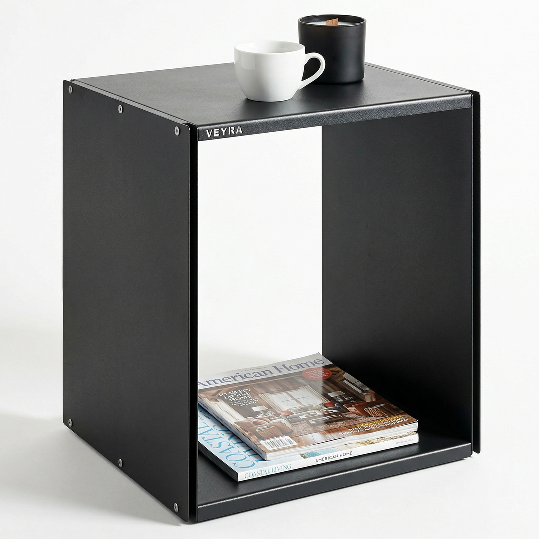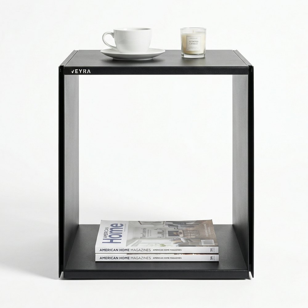 VEYRA Minimalist Metal Cube End Table in Matte Black