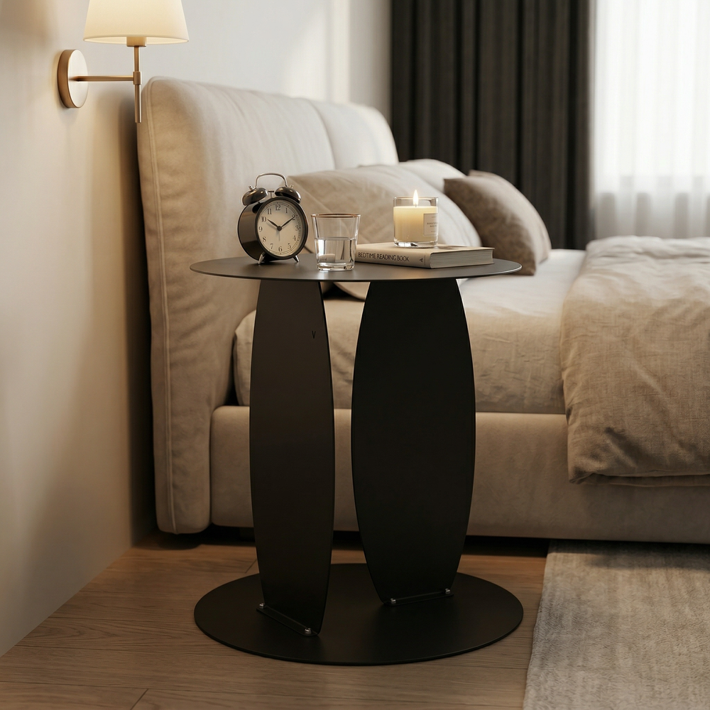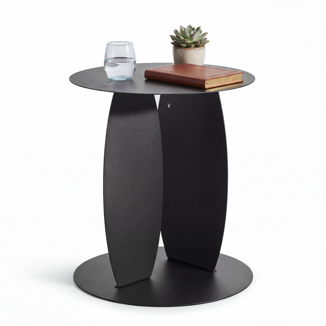 VEYRA Minimalist Metal Round End Table in Matte Black