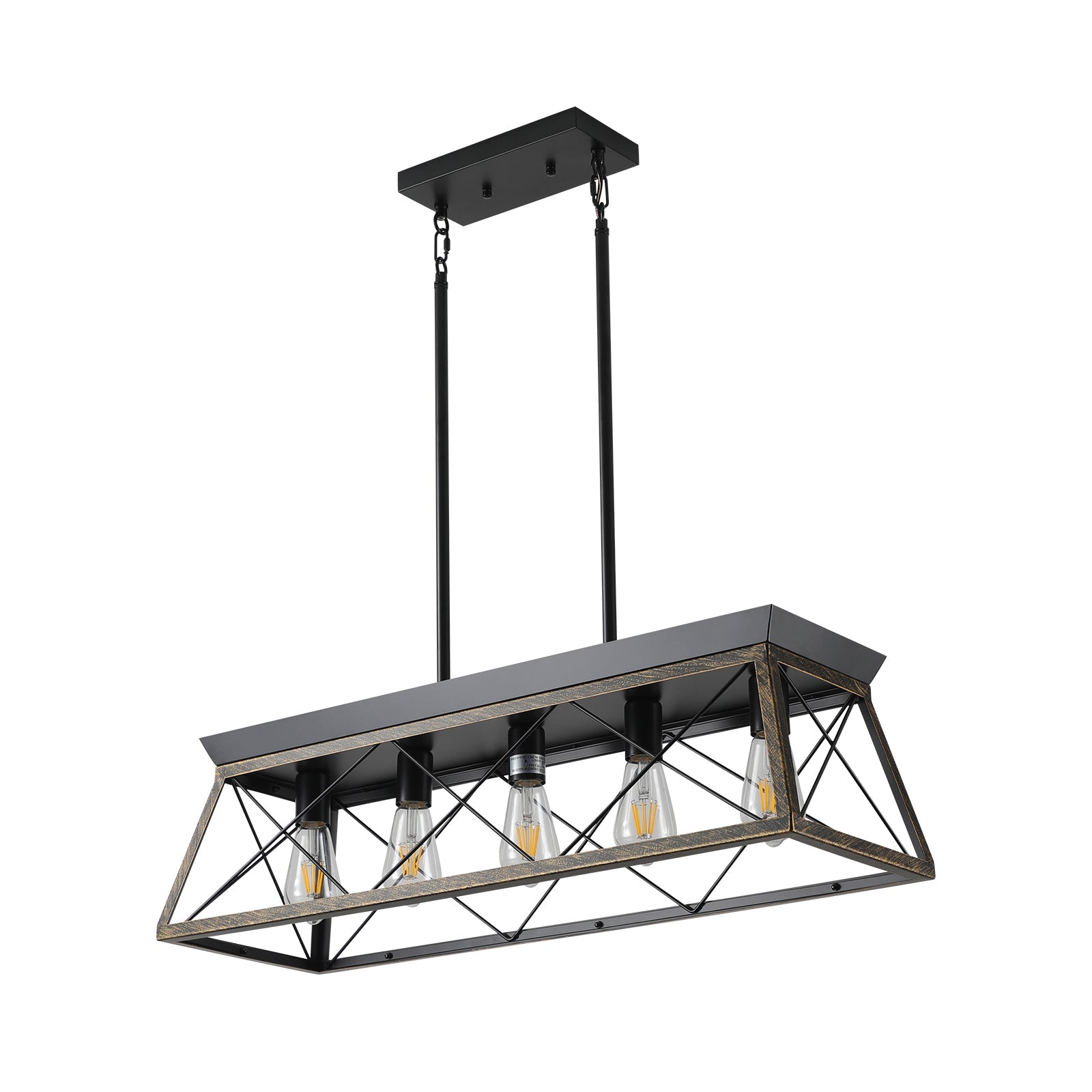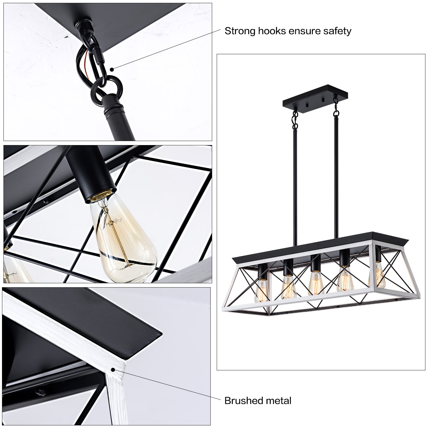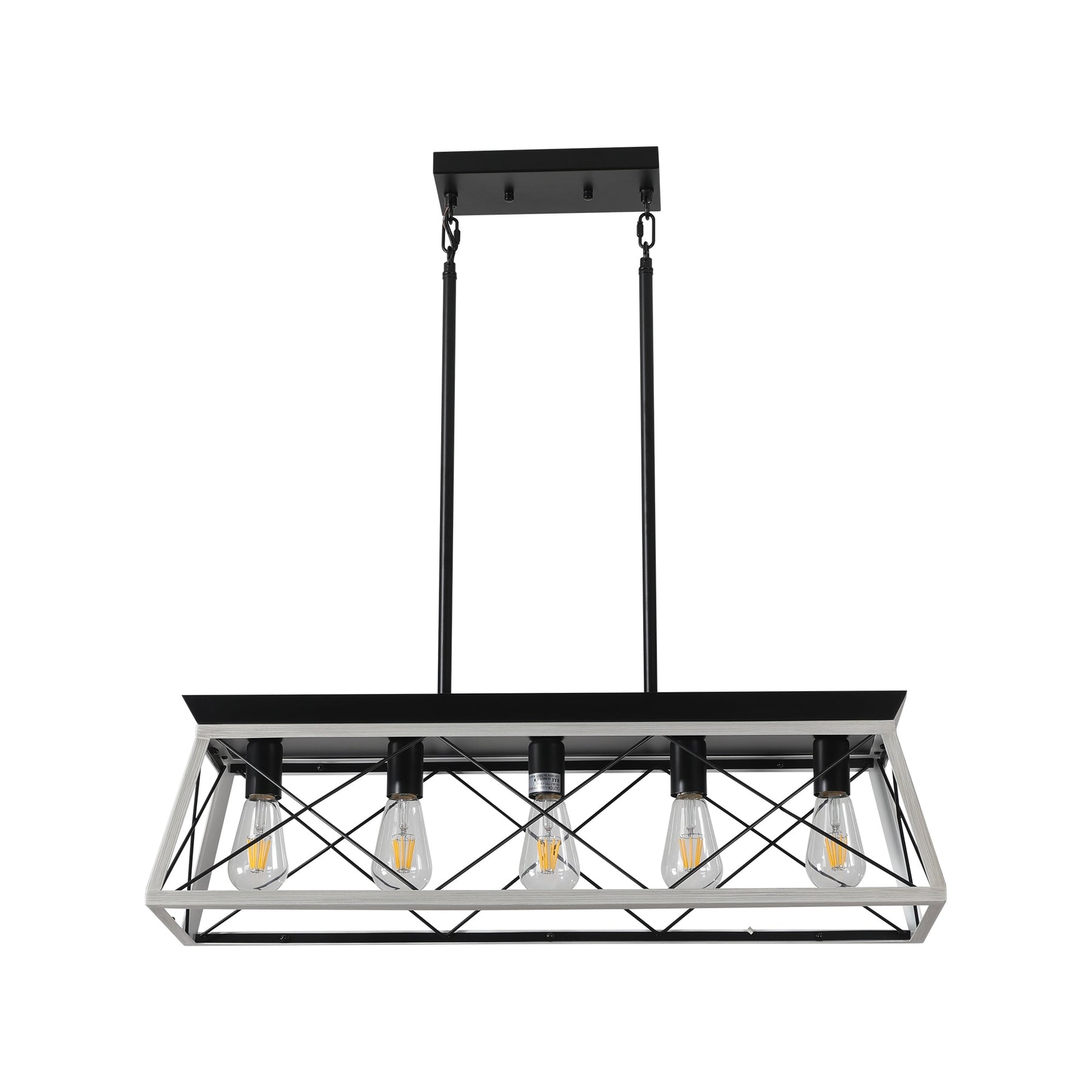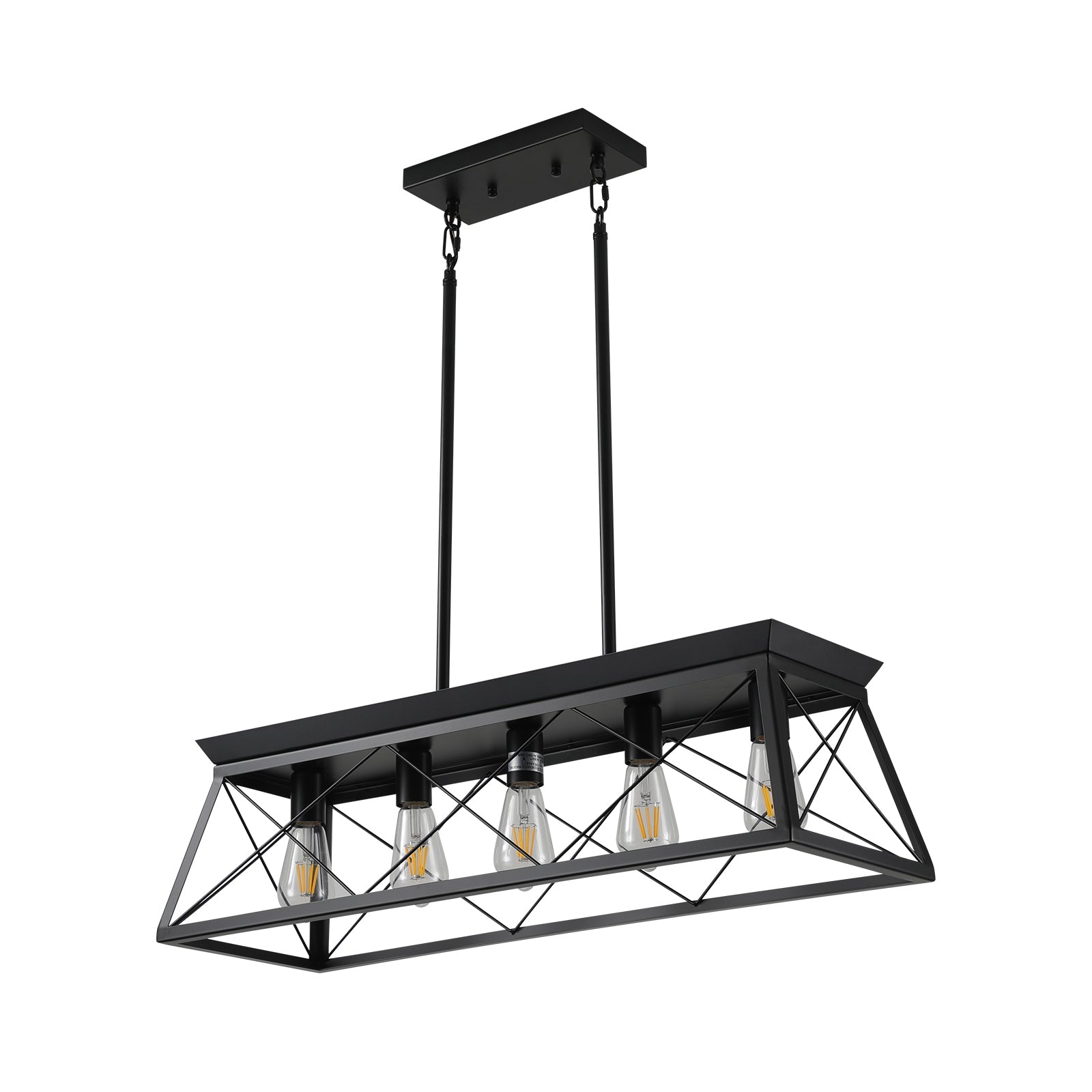 Bring a captivating focal point to your kitchen island or dining area with this stunning 5-bulb open-cage fixture. It flawlessly merges rustic farmhouse aesthetics with sleek industrial design to elevate any modern interior. Featuring a specialized pivoting mount and multiple sets of extension poles, this piece easily adapts to virtually any ceiling height or angle. Crafted from premium, rust-proof metal, the breezy unshaded framework not only provides maximum illumination but also ensures effortless upkeep and enduring style for years to come.