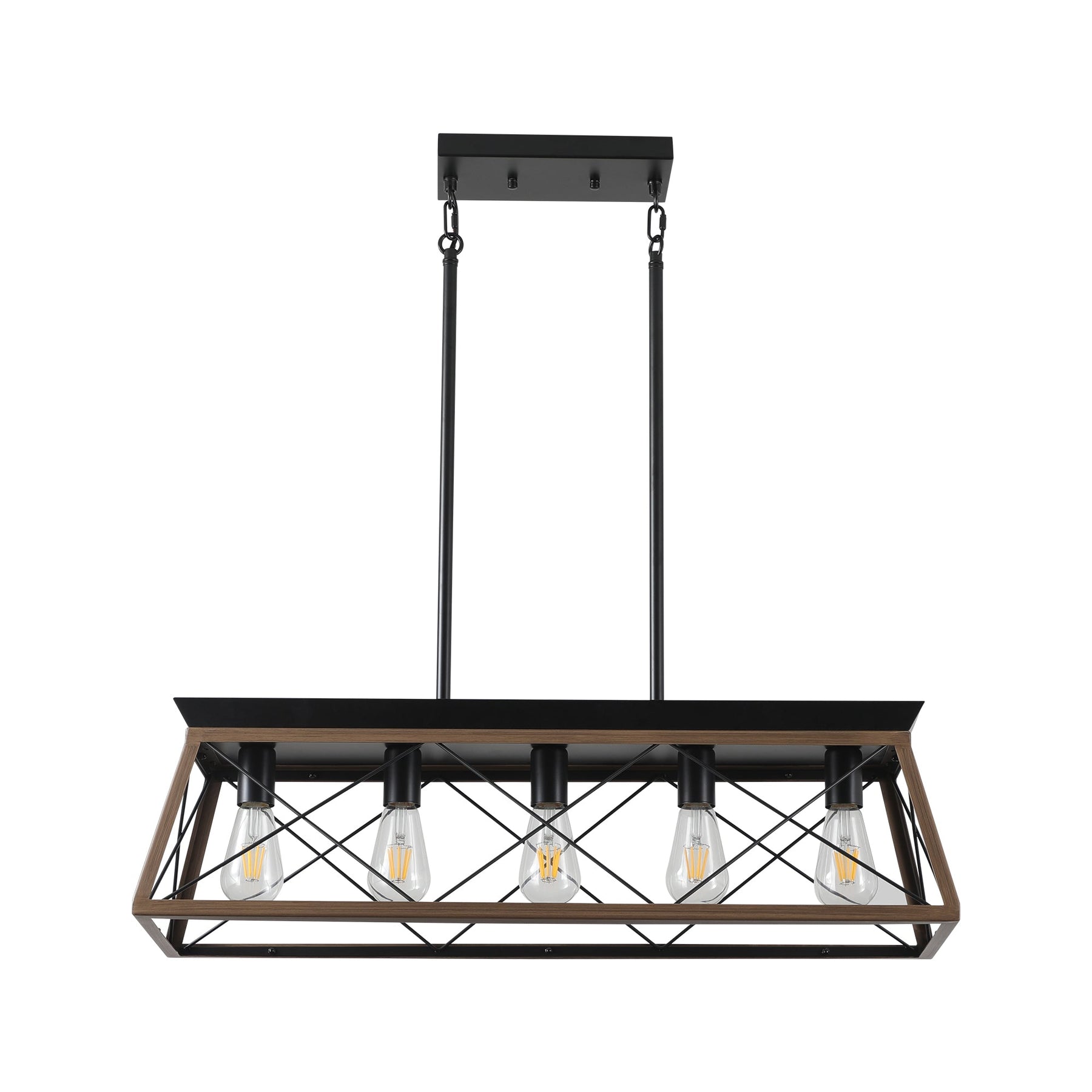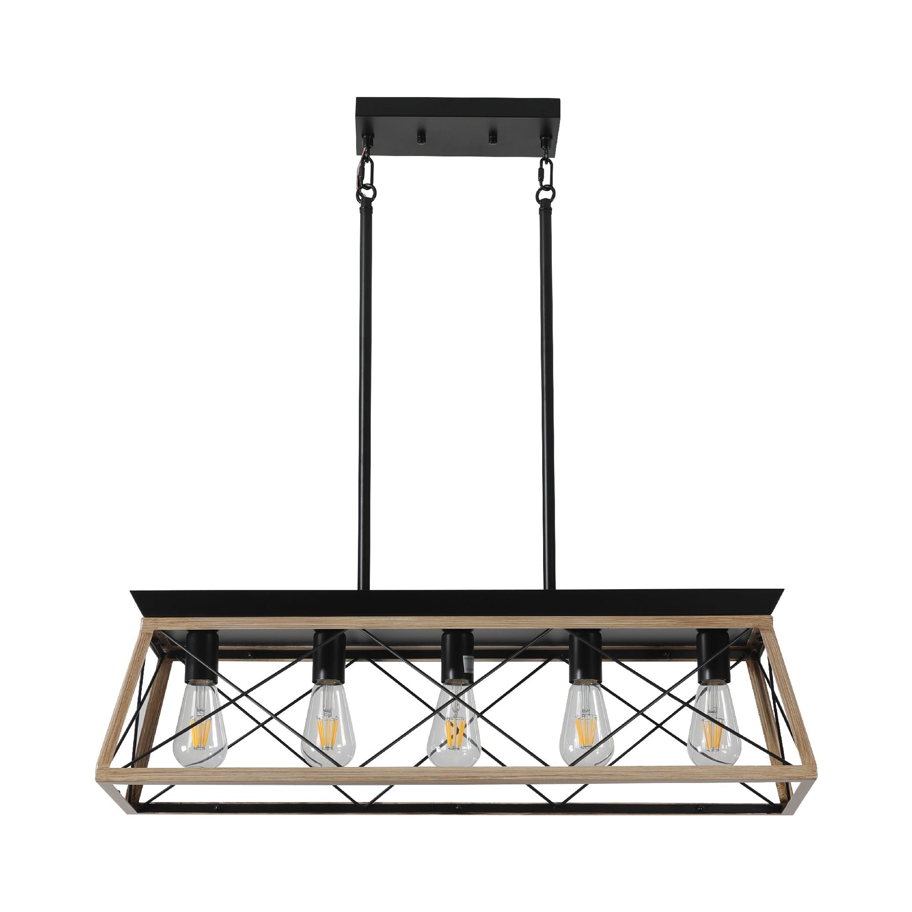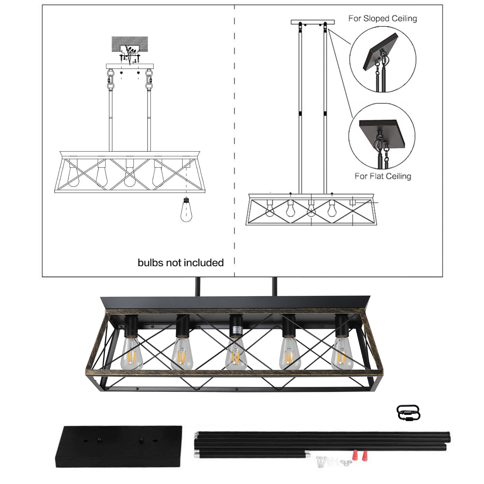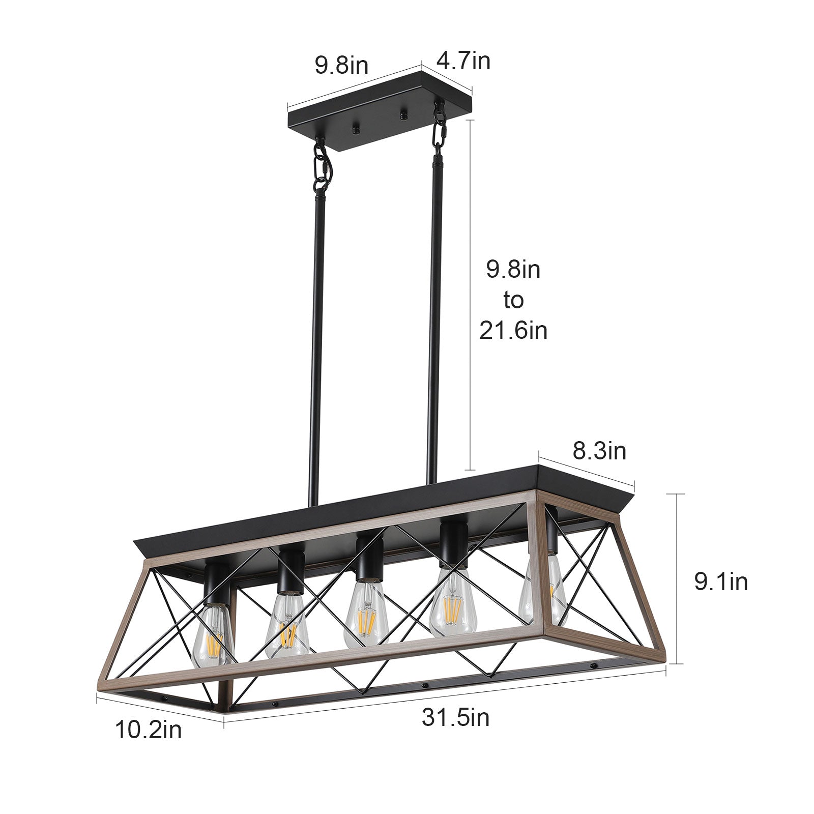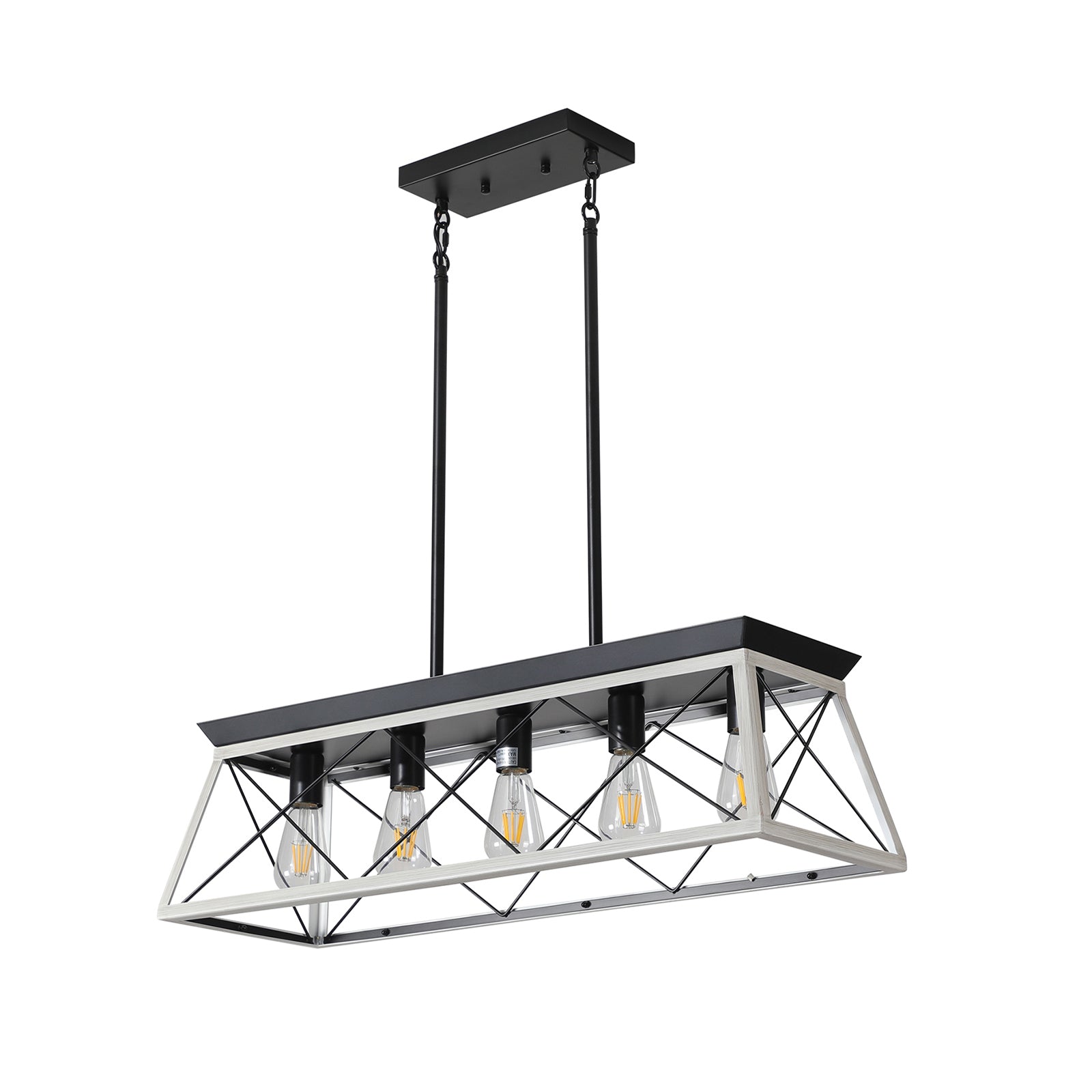 Bring a captivating focal point to your kitchen island or dining area with this stunning 5-bulb open-cage fixture. It flawlessly merges rustic farmhouse aesthetics with sleek industrial design to elevate any modern interior. Featuring a specialized pivoting mount and multiple sets of extension poles, this piece easily adapts to virtually any ceiling height or angle. Crafted from premium, rust-proof metal, the breezy unshaded framework not only provides maximum illumination but also ensures effortless upkeep and enduring style for years to come.