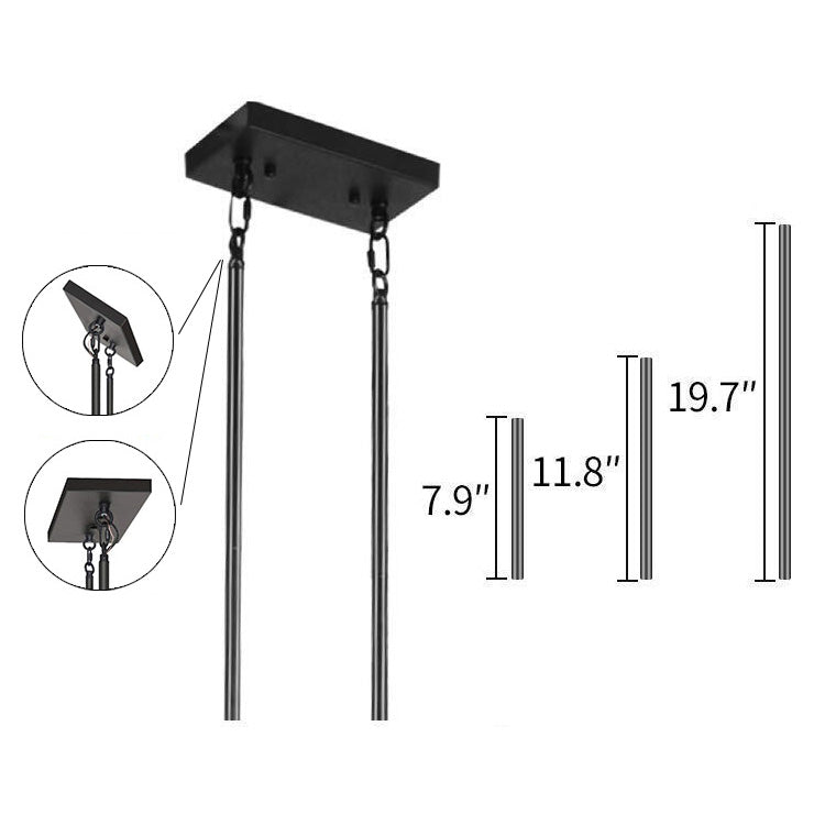 - Measures 31.5" L x 10.2" W. The overall drop is fully adaptable, adjusting anywhere from a minimum of 7.9" to a maximum of 39.4" to match your ceiling